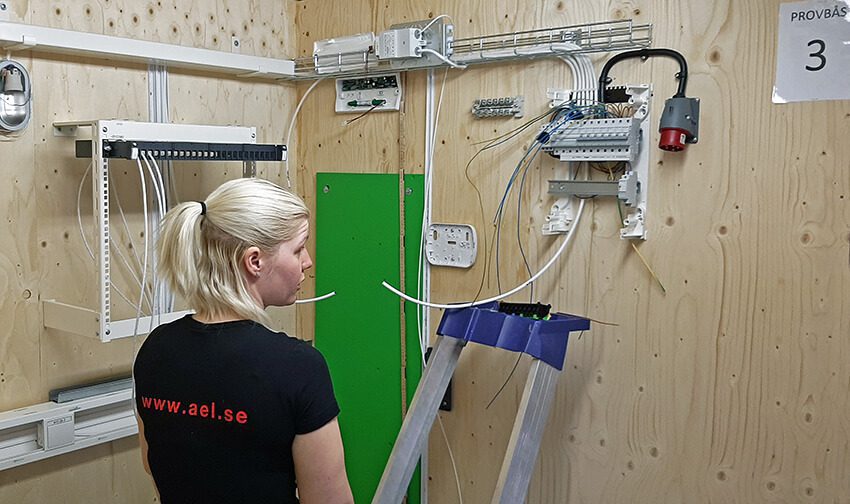 Det kallas för ”väggen” och det är i dessa bås som lärlingarna ska visa vad de har lärt sig genom att utföra olika typer av installationer. De som klarar yrkesprovet blir förstaårsmontörer.