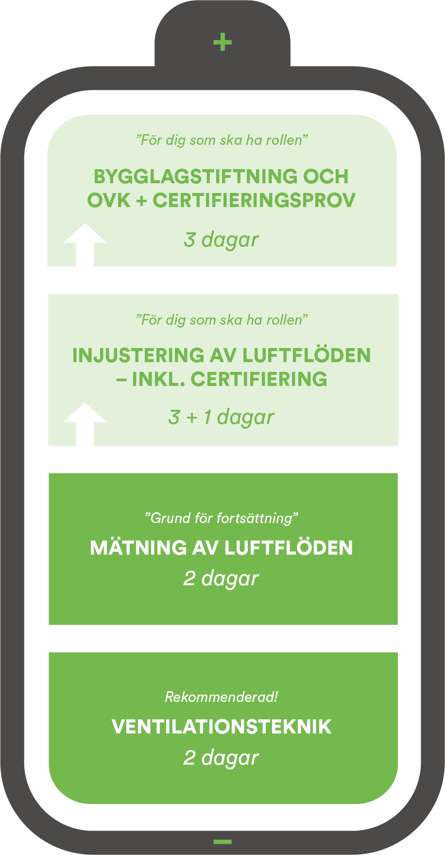 TIPS! Kursen Mätning av luftflöden kan även läsas separat för ökad kunskap om ventilationssystem och dess funktioner. För att fullt ut kunna utföra luftflödesmätningar i ett ventilationssystem bör du även komplettera med kursen Ventilationsteknik. Vill du kompetensutveckla dig vidare rekommenderar vi kursen Injustering av luftflöden.